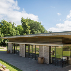 The concept for the new visitor centre was born out of the immediate landscape and is located at the public entrance where the building welcomes visitors to Virginia Water. It’s canopied form